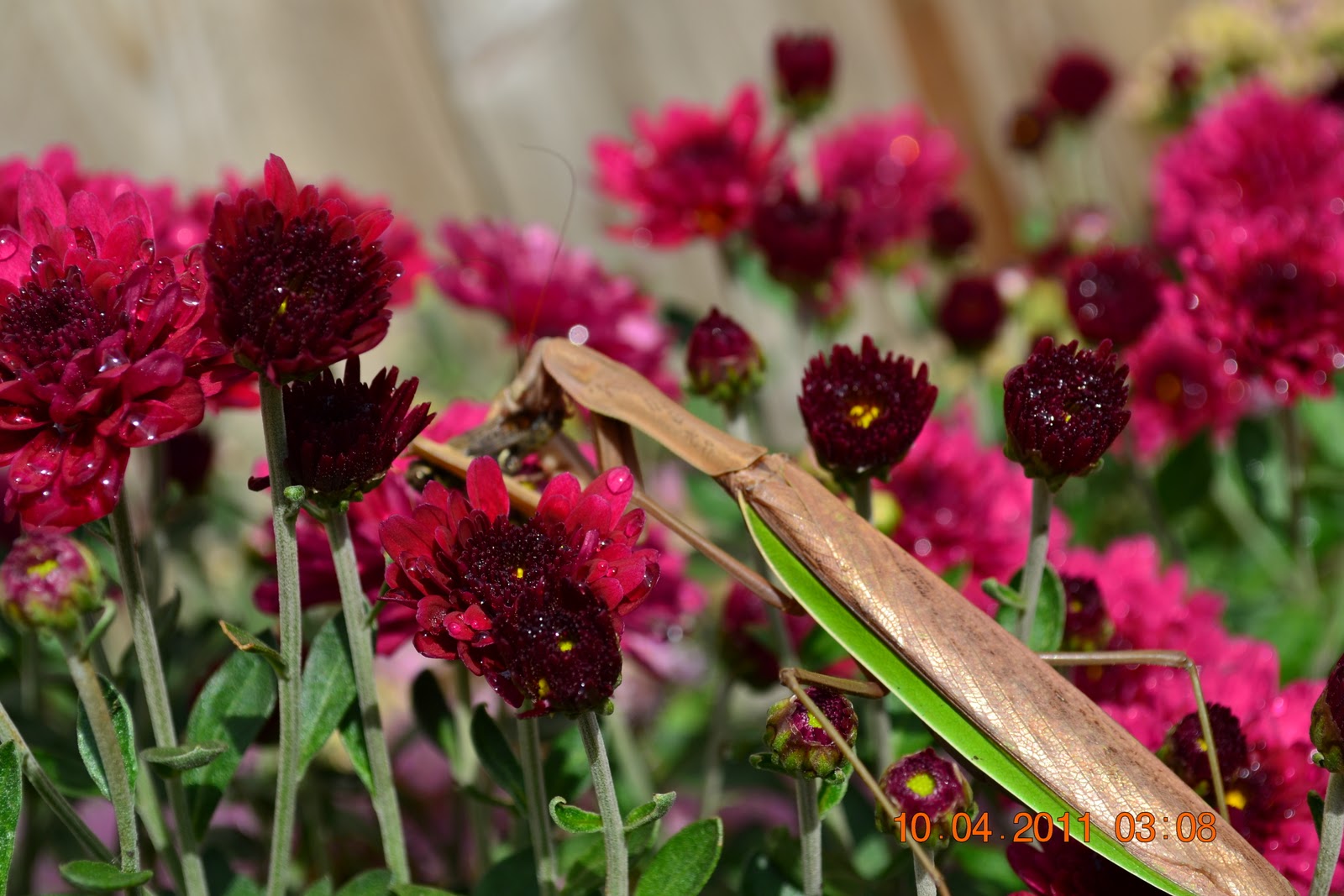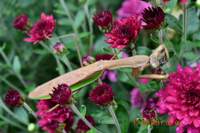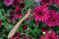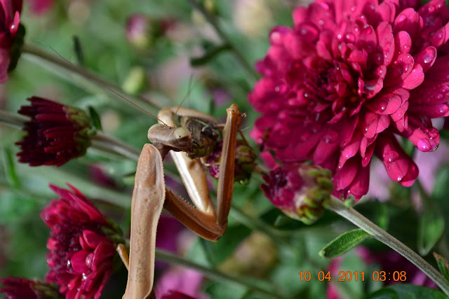 I had a Praying Mantis living in the bushes in front of my porch but I haven't seen him lately. I've never seen him eat. :)